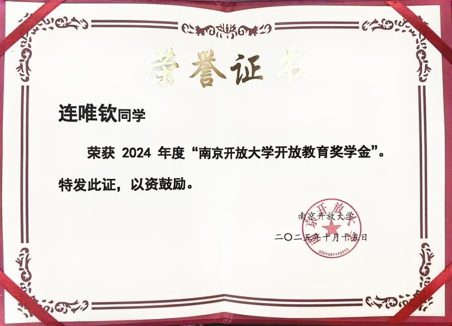 关于表彰 2024 年度南京开放大学 半岛在线奖学金获奖学生的决定