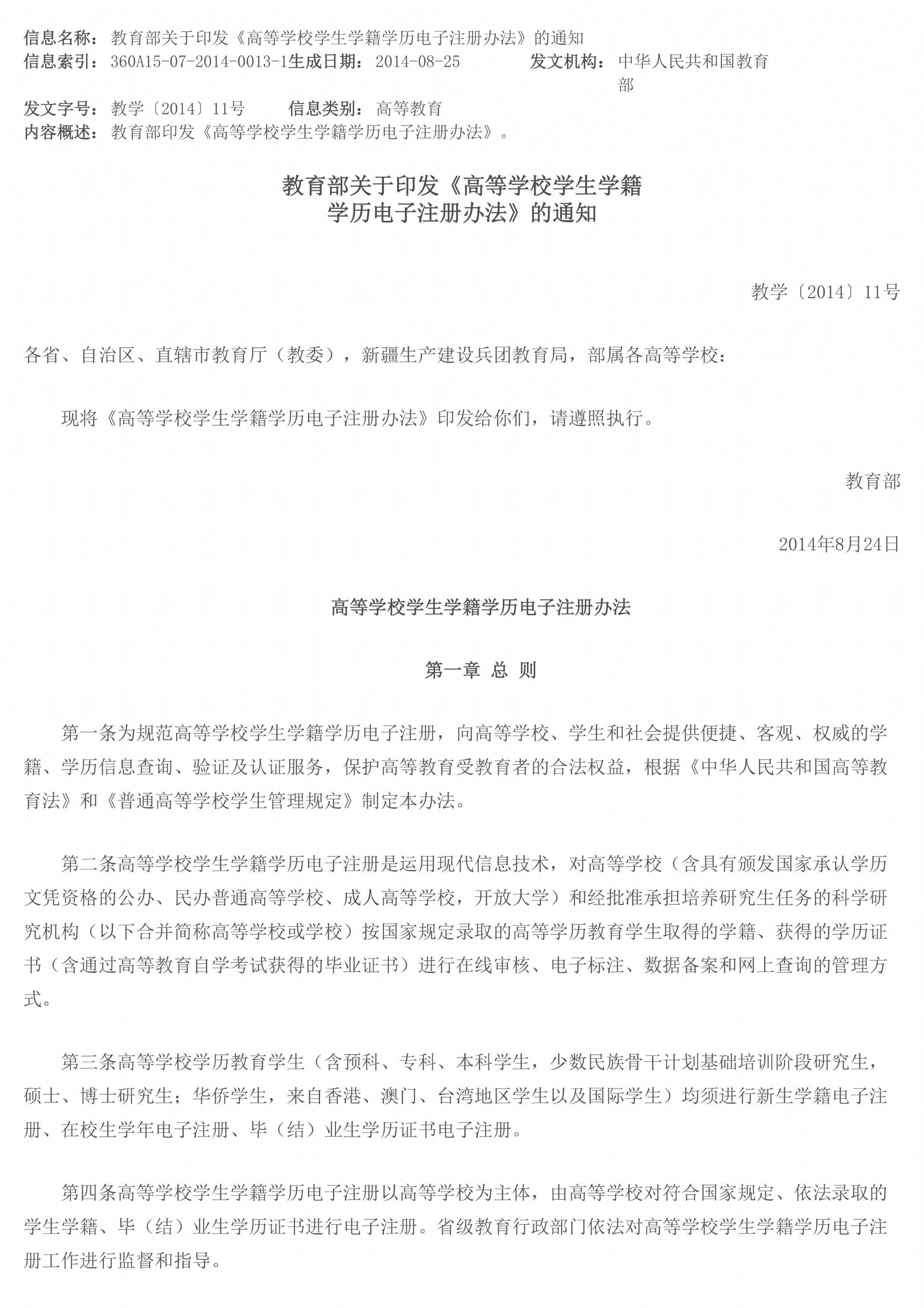 教育部关于印发《高等学校学生学籍学历电子注册办法》的通知